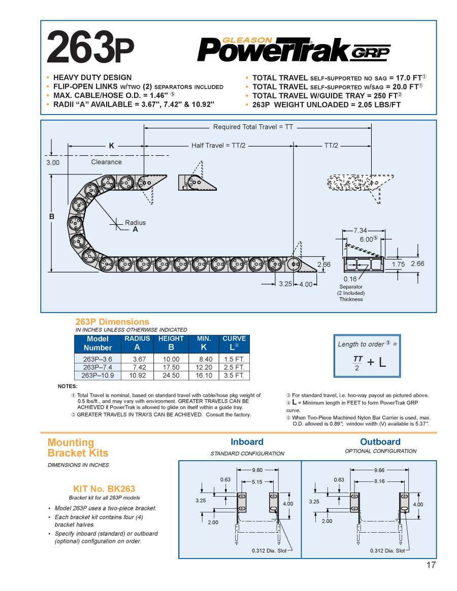 Type "GRP" PowerTrak is available with inside openings from 0.75" x 0.59" to 2.55" x 8.00"